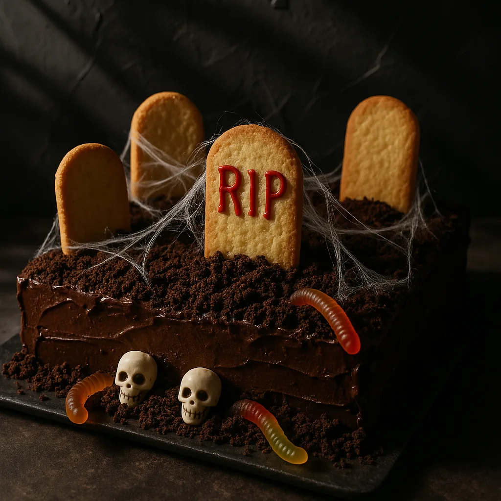 Ce dessert terrifiant recrée un cimetière lugubre avec des tombes comestibles.